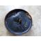 carton plat imbibé d'un corps gras pour le rendre étanche et stable. Rempli de bougie / cire. Une mèche courte et large au milieu. Après l’allumage elle fond et pour éviter que la mèche ne tombe, elle a été placée sur un support en métal.