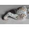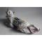Bouquetière d'applique en faïence Desvres en forme chat en train de grimper au mur à décor polychrome de fleurs et armes de Granville yeux en verre signée Granville et GM pour Géo Martel (1872-1942) bon état