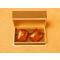 Les tiges de balle arrière sont entièrement fonctionnelles. Boutons de manchette faits à la main en ambre de la Baltique fabriqués par des artistes dans les années 1970 à l'usine DAILE de Klaipeda, Lituanie, URSS, dans leur emballage d'origine.