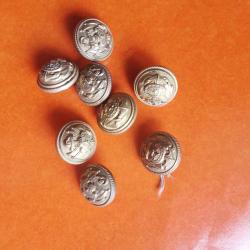 Lot de Boutons militaires Fleurs de Lys et Couronne "anglais" et 2 boutons de manchette