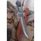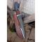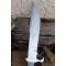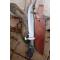 Couteau de chasse Bushcraft Survie à lame fixe - Longueur totale 39cm - Longueur de lame 25cm - Lame en acier carbone 1055 - Lame type harpoon plain edge finition satin - Construction d'une seule pièce - Full tang - Plaquettes du manche en bois - Grosse garde en acier - Etui cuir - Fabrication artisanale