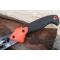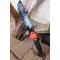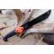 Couteau Machette Bowie Survie à lame fixe - Longueur du manche 19cm - Longueur de lame 28cm - Lame en acier inox 3Cr13 - Lame de type drop point plain edge finition black - Vraie Scie sur le haut de la lame - Garde dans le manche - Manche en abs black & orange - Trou dans le manche pour dragonne - Etui nylon - Fonction machette & bowie