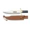 Après le succès de leur série limitée du bowie Knife traditionnel américain, l'équipementier AlbaInox propose un nouvea Bowie Knife du style confédéré. Ce poignard de la Guerre de Sécéssion possède une lame acier de 35cm très massive. Le dos de lame ainsi que la garde sont en laiton massif. Le poignée est en bois satiné gris. Le poignard est livré avec un étui cuir.