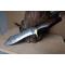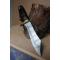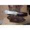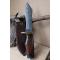 Bowie-Skinner Couteau de Chasse Damas Lame Acier 256 Couches Manche Bois Fabric Artisanale Etui Cuir