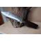 Skinner Bowie lame damas - Longueur du manche 11cm - Longueur de la lame 15cm - Lame en Acier damas 256 couches - Lame de type clip point - Manche en bois - Garde en laiton - Pommeau en acier - Fabrication Artisanale - Les dessins de la lame sont uniques comme une empreinte - Etui cuir