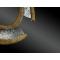 Disque en acier aiguisé sur l’extérieur ; la partie tranchante est protégée par un anneau de cuir gras. La partie interne est également recouverte d’un disque de cuir.