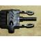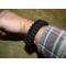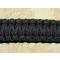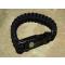 Bracelet de survie en paracorde noire. Permet d'avoir sur soi environ 3m de paracorde; la boucle intègre en outre un sifflet d'urgence ainsi qu'un firesteel (allume-feu) d'un coté et son grattoir de l'autre - le grattoir affûté peu aussi servir de couteau d'urgence.
