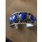 Bracelet turkmène avec pierres lapis lazuli serties sur argent 925 - largeur 3cm légèrement ajustable
