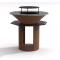 Je le trouve trés joli et agrémente une terrasse. En ce qui concerne sa fonction il monte rapidement en température et le bois se consume entièrement en cendres fines. Il remplit trés bien ce que je voulais faire avec, seul petit bémol il manque un rebord autour de la plaque en fonte pour empécher certains aliments de tomber dans le feu et délai un peu long.