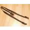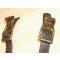 Très peu courant brelage de cavalerie Allemand en bon état général. Le cuir bien que portant les stigmates de son age à un aspect "fibreux" mais reste souple. Il présentE des craquelures par endroits surtout comme souvant au nivau des parties métalique des portes cartouchières mais n'est pas encore au stade du cassant. Il est à noté qu'il maque les 2 stop-boucles sur les 2 sanglons porte cartouchières. Les portes cartouchières sont en tôle emboutie initalement cuivré par éléctolyse pour ne pas qu'ils rouillent mais le temps à eu en bonne partie raison de ce traitement protecteur, Ils présente l'aspect visuel standard de l'époque. Les coutures des sangles autour de l'anneau dorsale sont en bon état et encore solides. L'anneau à un peu souffert de l'oxydation en raison du contact prolongé du cuir mais n'est pas en danger de rupture. Le sanglons dorsale présente un marquage en frappe malheureusement illisible sans doute du fabriquant et la date; on remarque aussi 2 marques inssisées à proxmitée: IL ou LL (sans doute les initiales du soldat). Le petit rabat cache crochet typique est présent,bien qu'un peu chiffoné il reste souple. Le passe ceinture à le même aspect que les 2 portes cartouhières.