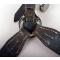 Belle paire de bretelles de suspension modèle 1939 du modèle lourd pour charges dorsales. Le cuir épais est souple et en très bon état. Les anneaux et crochets en métal ont conservé leur peinture d’origine sans traces d’oxydation. Les pastilles cuir de protection sont en très bon état ainsi que les coutures.