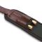 Dans une association de différents matériaux : textile vert, néoprène et cuir nappa marron.