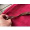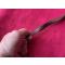 Bretelle ancienne en cuir fine, un manque de matière sur un côté en bas, voir photo, des rayures et des taches, autrement toujours fonctionnelle, longueur maximale : 94 cm, largeur haute : 2,4 cm et le bas : 1,5 cm, pas de prix de réserve.