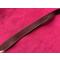 Bretelle en cuir neuve Alexandre Mareuil, ancien stock d'armurier mais mal agencée, donc donc quelques pliures aux extrémités et quelques marques sur le cuir autrement en bon état, longueur maximale : 99 cm , largeur sur le haut : 2,5 cm et sur le bas : 2,5 cm, pas de prix de réserve.