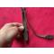 Bretelle ancienne en cuir ayant du vécu mais toujours fonctionnelle, sent un peu le renfermé et il manque la petite attache pour bloquer la lanière après la boucle, longueur maximale : 94 cm, largeur sur le haut : 2,5 cm et sur le bas : 1,5 cm, pas de prix de réserve.