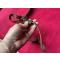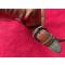 Bretelle ancienne en cuir de marque SHK si j'arrive bien à lire, avec support canons métallique et boucle lasso un peu rêche mais en bon état, des rayures et des taches noires , longueur maximale : 101 cm, pas de prix de réserve.