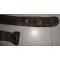 bretelle de mousqueton cuir fauve , rivetée fabrication de guerre pour remplacer les coutures , longueur 96 cm , boucle acier , une trace de coupure superficielle (voir photo )