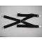 Bretelles de couleur noire. Les bandes élastiques sont munies de quatre clips solides en inox. Les longueurs sont réglables par les pinces coulissantes. Élégantes en forme de X elles sont confortables et légères. Ce modèle très tendance s'accorde avec de nombreuses tenues pour toutes sorties.