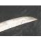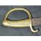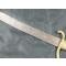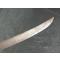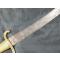 Lame plate et courbe de 58,5 cm patinée grise avec quelques traces d'oxydation de surface sur toute la longueur. Présence de multiples petits impacts sur le tranchant de la lame attestant de son vécu. Pas de fourreau. Le bronze a gardé sa patine d'origine, il n'a pas été repoli.