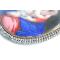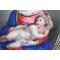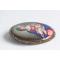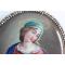 Grande broche en émaux peints sur cuivre, Vierge à l'enfant émail suisse de belle qualité entourée de pointes de diamants en acier d'époque XVIIIe siècle bon état (traces d'usage)