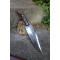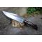 Couteau de Survie Bowie Chasse à lame fixe - Longueur totale 30cm - Longueur de lame 17.5cm - Longueur du tranchant 17cm - Lame en acier carbone 1075 - Lame type clip point plain edge finition brut de forge - Construction d'une seule pièce - Full Tang - Plaquettes du manche en bois - Etui simili cuir - Fabrication Artisanale - Couteau polyvalent : buschraft, cuisine, chasse