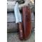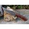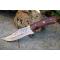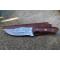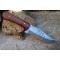 Couteau de chasse Bushcraft Survie à lame fixe - Longueur totale 22.5cm - Longueur de lame 12cm - Lame en acier damas 256 couches - Beaux dessins Damas bubble inox - Lame type clip point plain edge - Construction d'une seule pièce - Full tang - Plaquettes du manche en bois - Mosaic pins - Etui cuir - Fabrication artisanale