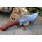 Bushcraft Couteau de Chasse Lame Acier Damas 256 Couches Inox Manche Bois Etui Cuir Artisanale