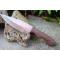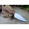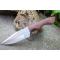 Couteau de chasse Bushcraft Survie à lame fixe - Longueur totale 23cm - Longueur de lame 12cm - Lame en acier carbone 1055 - Lame type clip point plain edge finition satin - Construction d'une seule pièce - Full tang - Plaquettes du manche en bois rosewood - Etui cuir - Fabrication artisanale