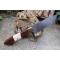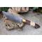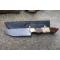 Couteau de chasse Bushcraft Survie à lame fixe - Longueur totale 22.5cm - Longueur de lame 11.5cm - Lame en acier carbone 1055 - Lame type drop point plain edge finition stonewash - Construction d'une seule pièce - Full tang - Plaquettes du manche en bois & os - Etui simili cuir - Fabrication artisanale