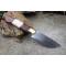 Couteau de chasse Bushcraft Survie à lame fixe - Longueur totale 22.5cm - Longueur de lame 11.5cm - Lame en acier carbone 1055 - Lame type drop point plain edge finition stonewash - Construction d'une seule pièce - Full tang - Plaquettes du manche en bois & os - Etui simili cuir - Fabrication artisanale