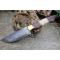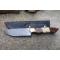Couteau de chasse Bushcraft Survie à lame fixe - Longueur totale 22.5cm - Longueur de lame 11.5cm - Lame en acier carbone 1055 - Lame type drop point plain edge finition stonewash - Construction d'une seule pièce - Full tang - Plaquettes du manche en bois & os - Etui simili cuir - Fabrication artisanale