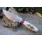Bushcraft Couteau de Chasse Survie Lame Carbone 1055 Manche Os Dragon Etui Cuir Fabric Artisanale