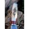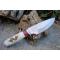 Couteau de chasse Bushcraft Survie à lame fixe - Longueur totale 22cm - Longueur de lame 11.5cm - Lame en acier carbone 1055 - Lame type drop point plain edge - Garde & pommeau en nickel - Plaquettes du manche en résine & os avec gravure dragon - Etui simili cuir - Fabrication artisanale