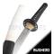 Fourreau en bois vernis noir avec une partie recouvert de cuir blanc.