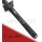 Magnifique Katana practical Ninja de la marque Fudoshin. Katana forgé pouvant servir à la coupe. Lame droite en acier dur (type de construction full Tang). Manche en peau de raie véritable recouvert de cuir noir tressé. Fourreau en bois laqué noir. Garde en acier avec représentation d'un Dragon. Type de Lame : Damas