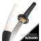 Fourreau en bois vernis noir avec une partie recouvert de cuir blanc.
