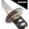 Veritable sabre forge a la main de la marque Bushido, lame Maru en acier a base de carbone Hamon realise traditionnellement (ligne de coupe).