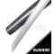 Réplique exacte du katana practical de Budd tiré du film ""Kill Bill"". Véritable sabre forgé à la main de la marque Bushido, lame Maru en acier à base de carbone Hamon réalisé traditionnellement (ligne de coupe). Poignée en peau de raie recouverte de coton noir. Tsuba en acier noir. Fourreau en bois vernis noir avec une partie recouvert de cuir blanc. Nuance: acier 1045 carbone forgé (acier dur, 0.45% de carbone)