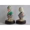 Paire de bustes en faïence représentant Voltaire et Rousseau sur des piédouches peints à l'imitation du marbre, à décor polychrome sur socles en bois d'époque fin du XVIIIe siècle bon état