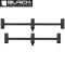 Buzz bars minces, élégants et réglables en aluminium anodisé noir, conçus pour que les curseurs puissent être déplacés le long des barres et serrés dans la position souhaitée.