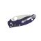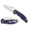 La lame et le manche sont reliés par le mécanisme breveté Ball Bearing Lock de Spyderco. Manche G10 de couleur bleu voir violet, il est léger, compact et coupe comme une lame de rasoir.