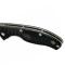 Lame satinée blanche en acier 8Cr13MoV en forme Drop point, ouverture avec le pouce grâce au trou dans la lame. Manche noir en FRN texturé antidérapant