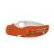 La lame entièrement plate de ce couteau est soutenue par un mécanisme de verrouillage par compression haute résistance et des doublures en acier inoxydable squelettisées imbriquées logées dans des écailles en nylon renforcé de fibre de verre (FRN). Manche orange brûlé ultraléger en nylon et fibre de verre (FRN) moulé par injection, avec clip de ceinture.
