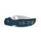 La lame entièrement plate de ce couteau est soutenue par un mécanisme de verrouillage par compression haute résistance et des doublures en acier inoxydable squelettisées imbriquées logées dans des écailles en nylon renforcé de fibre de verre (FRN). Manche ultraléger en nylon et fibre de verre (FRN) moulé par injection dans du bleu cobalt, avec clip de ceinture.
