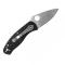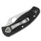 Déverrouillage du liner-lock pour replier le couteau aisément à une main. Lame satinée et lisse forme Drop point en acier 8Cr13Mov, logo Spyderco gravé suer la lame.