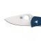 Déverrouillage du liner-lock pour replier le couteau aisément à une main. Lame satinée et lisse de forme Drop point en acier CPM S35VN, logo Spyderco gravé suer la lame.