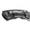 La plaquette côté recto présente une série de trous en forme de squelette, tandis que la plaquette du revers constitue la base du robuste mécanisme Reeve Integral Lock (RIL) du couteau. Les deux plaquettes ont une belle finition mate.