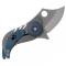 l'ouverture toujours par flipper ou avec le trou dans la lame. Une lame en acier américain CPM S45VN la version améliorée du CPM S45N. Sa forme Clip Point satinée et lisse. Manche en titane microbille, un verrou intégral Reeve (RIL) et une "queue" pliante anodisée bleue.