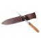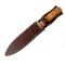 Le couteau est fourni avec un étui en cuir marron surpiqué et bouton pression.