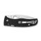 Le manche du couteau est construit sur une structure de doublures en acier inoxydable squelettisées imbriquées dans des plaquettes lisses en G-10 noir. Trou à l'arrière pour le passage d'une cordelette.